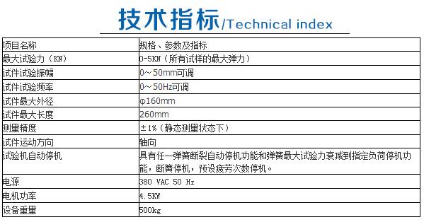 该机主要用于对各种螺旋弹簧,也可制作特种夹具,以适应特殊试样的疲劳试验。整机具有结构合理、简单可靠,试验空间调整、试验行程调整准确、方便;试件装夹方便、可靠;整机运行平稳,易于保养、维护等特点。